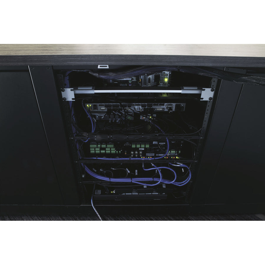 The Rackmount LED Work Light is an integrator-focused rack lighting option offering unparalleled visibility during installation and servicing. Designed with flexible mounting and positioning capabilities, this full-rack lighting solution ensures premium illumination where the integrator needs it. Dual light with interconnect cable and multiple international power supplies included.