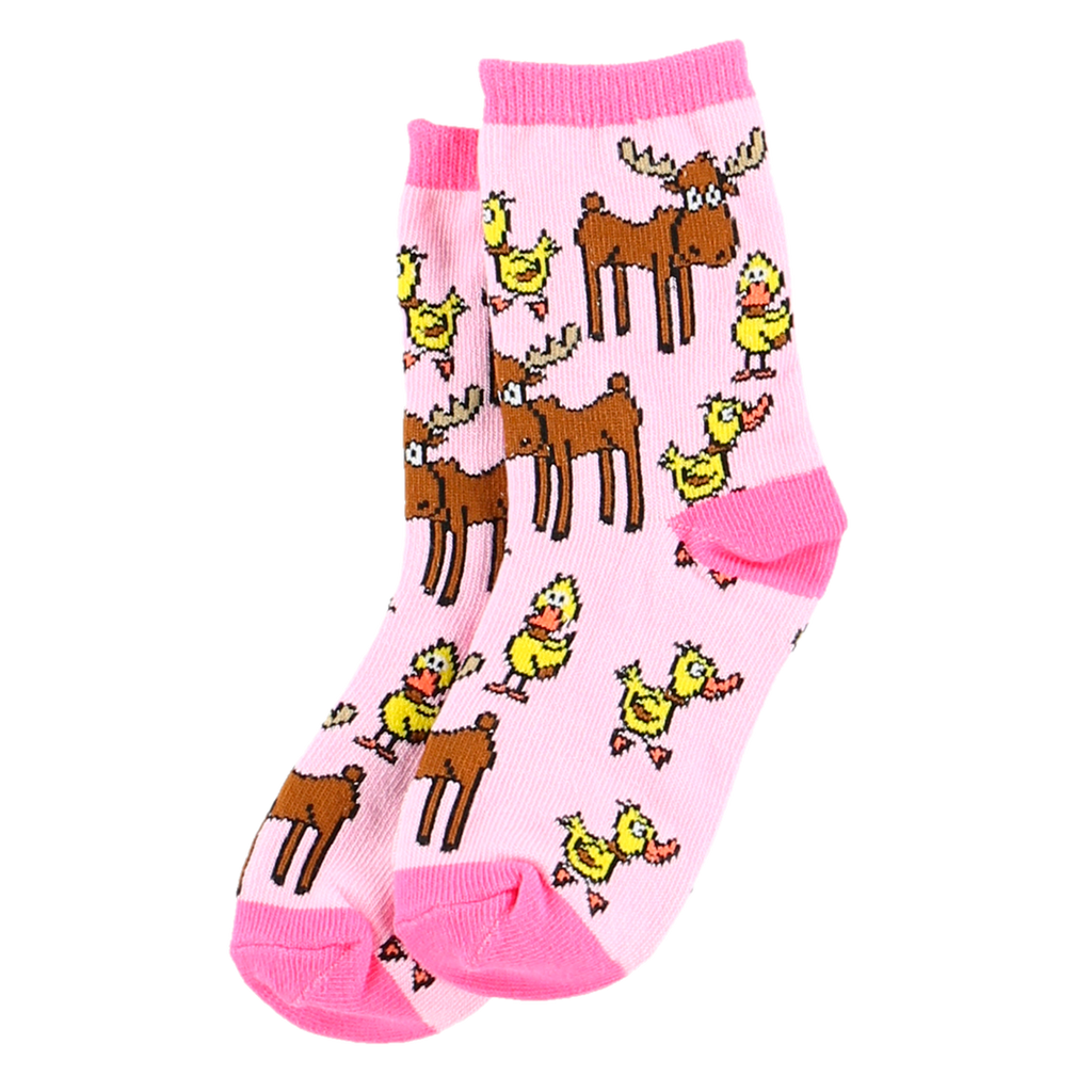 Duck and Moose Pink Kids Socks - Large (2-5)