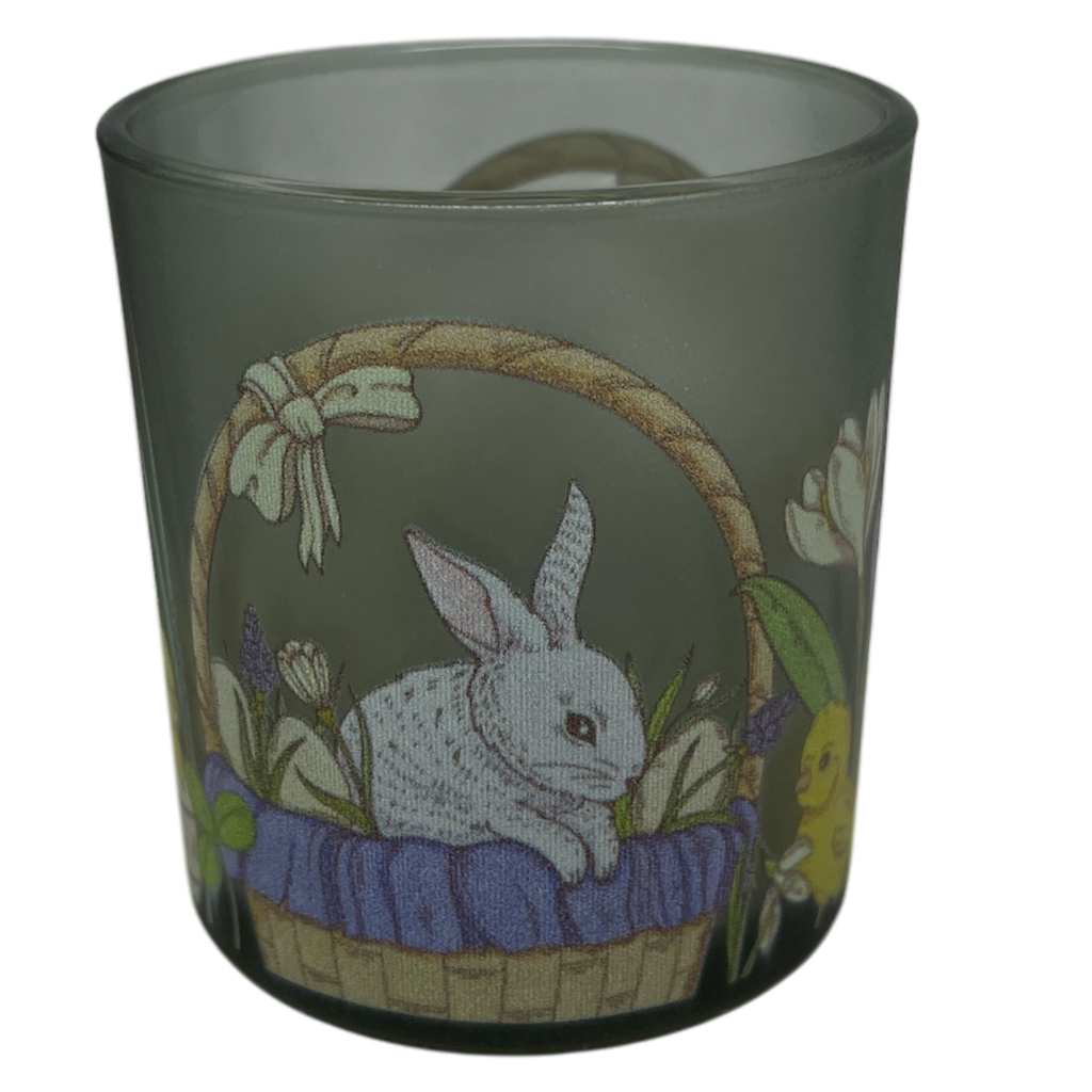 Celebrate the joy of Easter with these charming 3" diameter by 3" height candle holders, featuring delightful holiday-themed designs. Each holder is adorned with festive Easter imagery, adding a whimsical touch to your decor. Sold individually, they are perfect for enhancing table settings or gifting during the spring season.