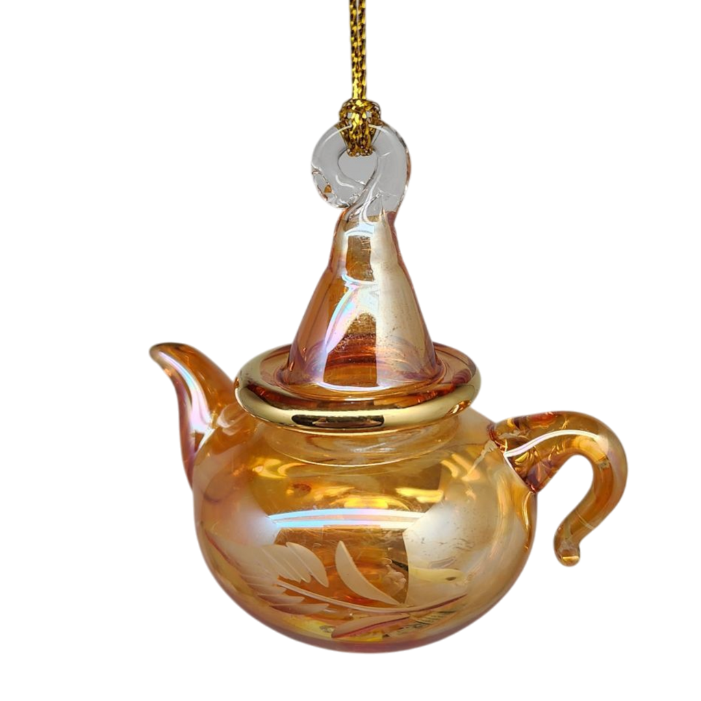 Egyptian Glass Teapot Ornaments - Etched Gold