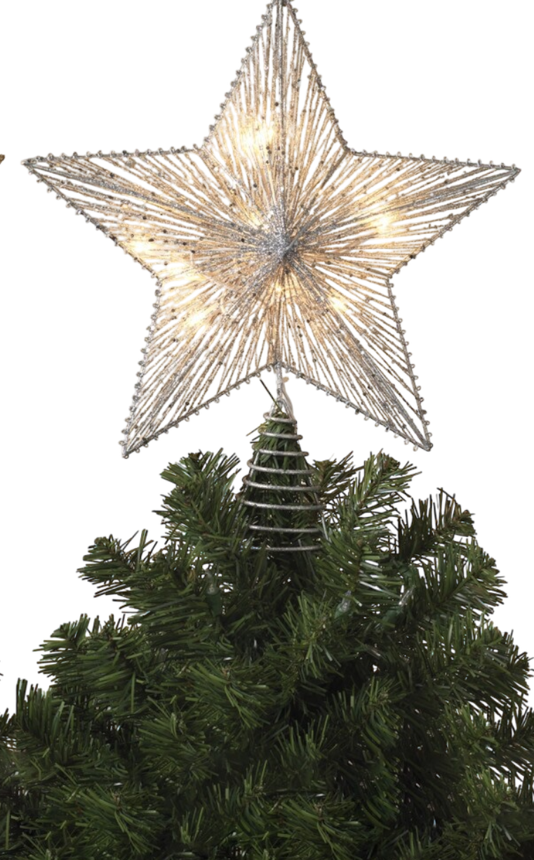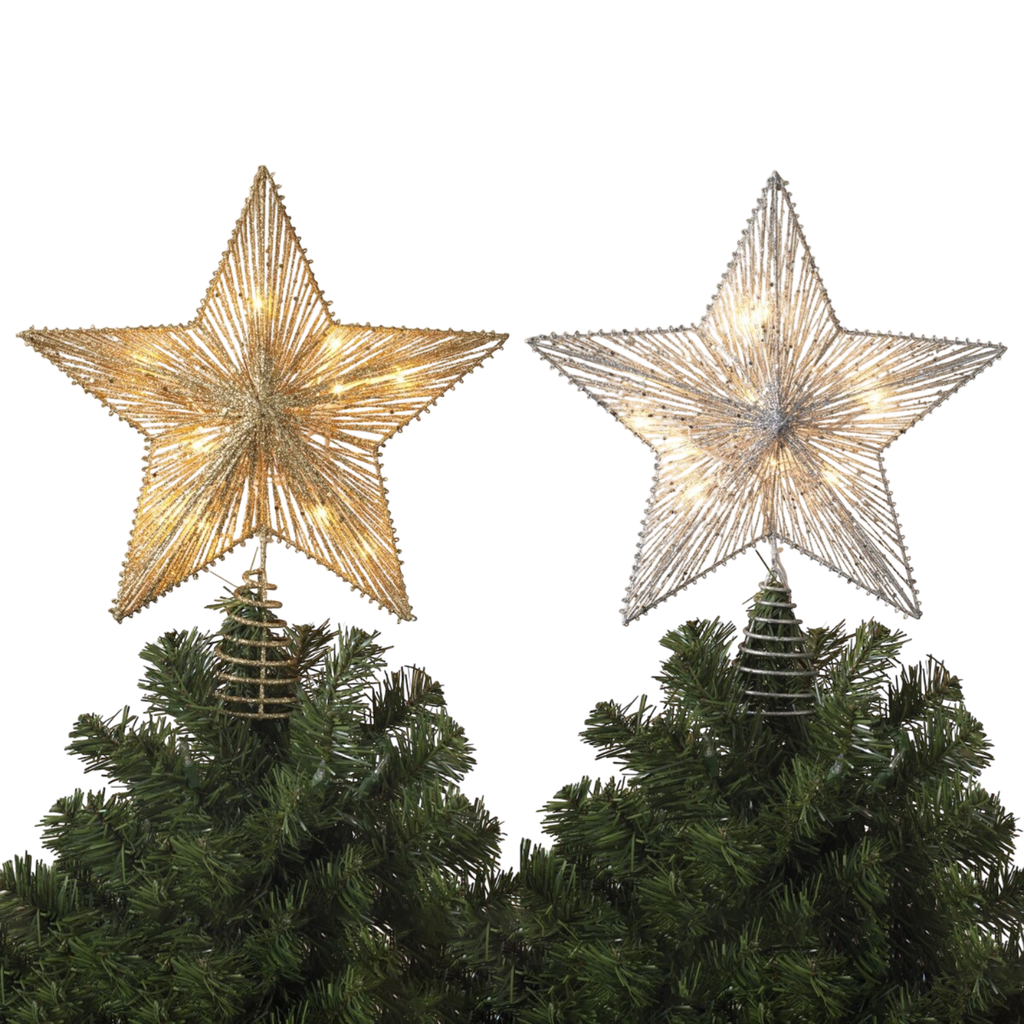 - 14"L Electric Lighted Glitter & Mesh Star Tree Topper with 10 Lights