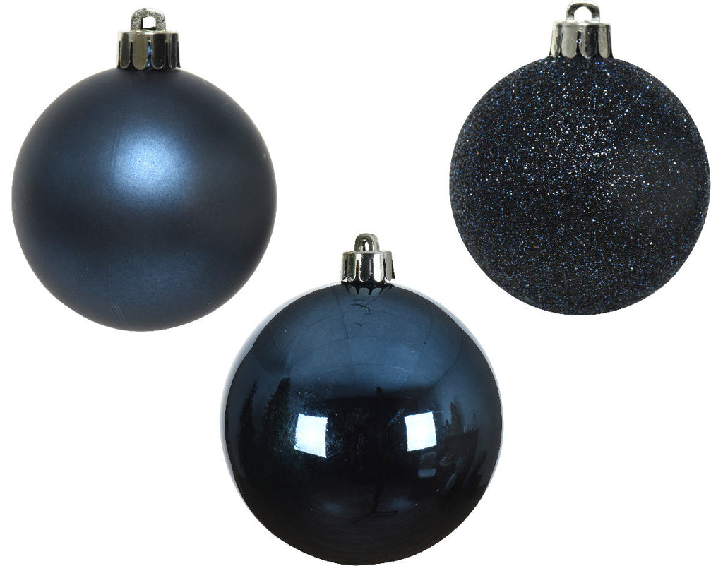 Elegant Assorted Night Blue Shatterproof Ornaments - Set of 10 - 2.4" Diameter