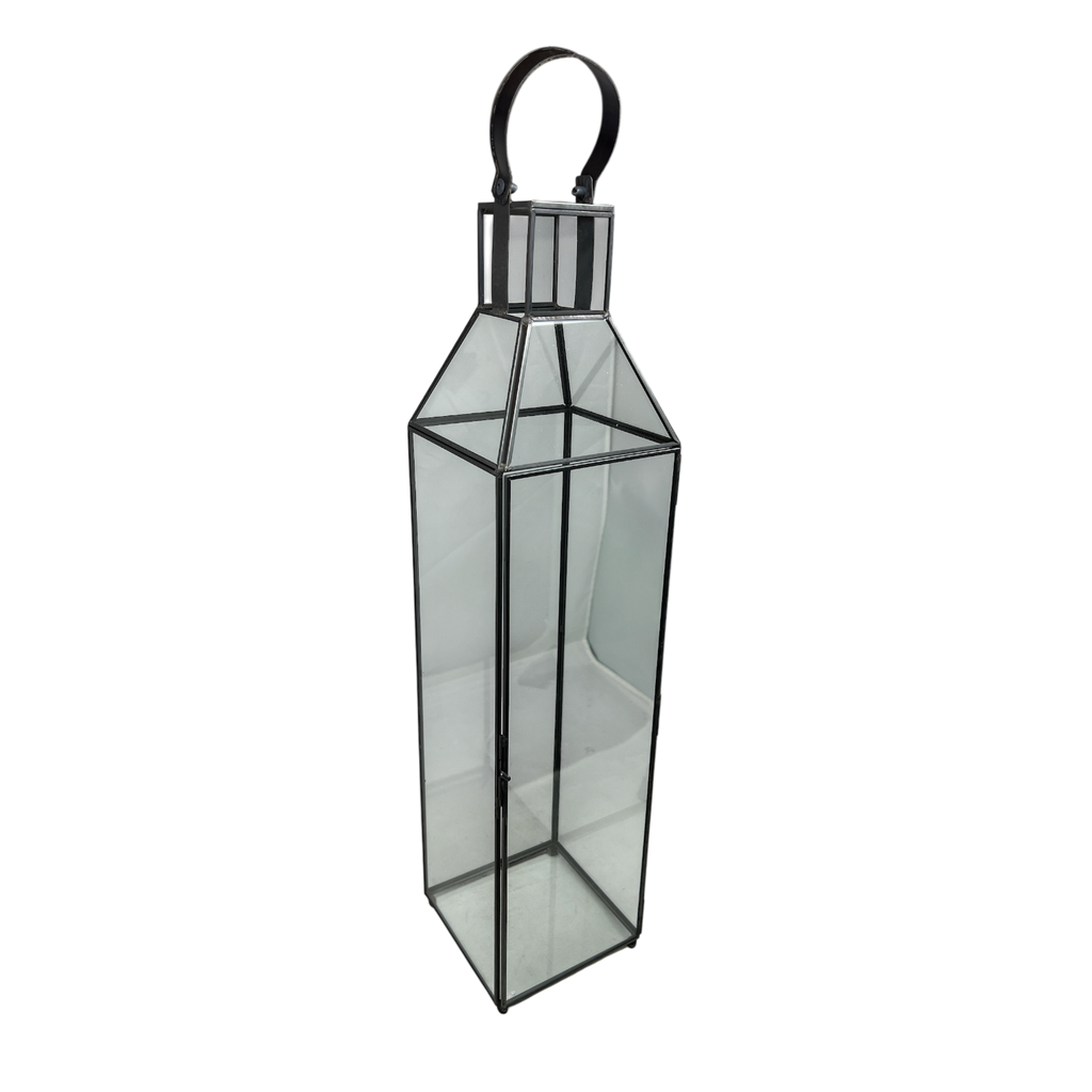 Illuminate your space with our Elegant Metal & Glass Lantern, a stunning decorative piece that measures 4.7 inches in length, 4.7 inches in width, and stands 20.9 inches tall. This beautifully designed lantern features a sleek combination of metal and glass, showcasing a classic silhouette that adds sophistication to any setting.