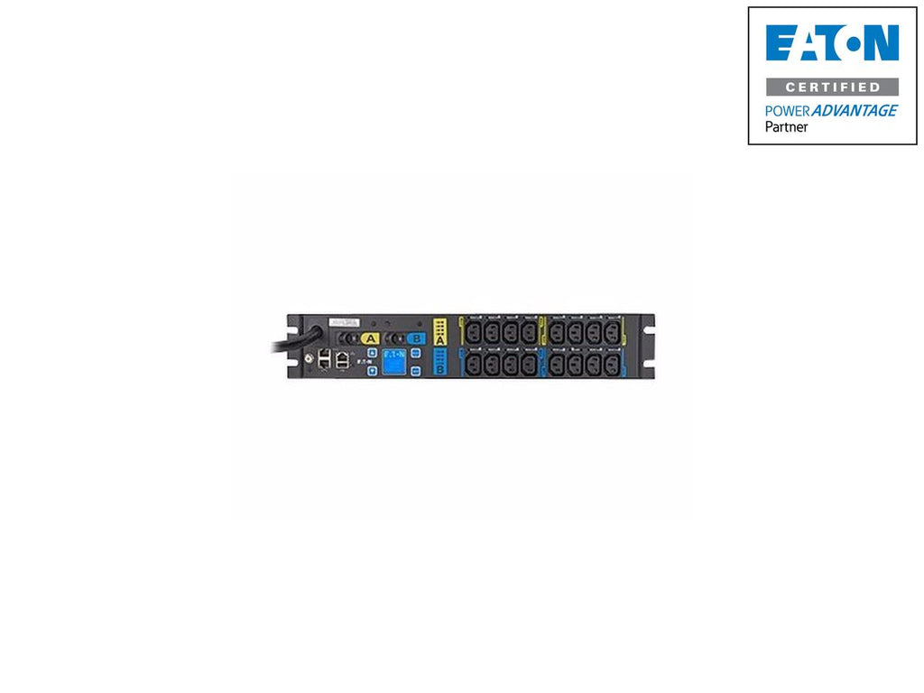 Managed power distribution unit by Eaton. EMAU07-10 rack mount PDU with intelligent monitoring and SNMP support for data centers.