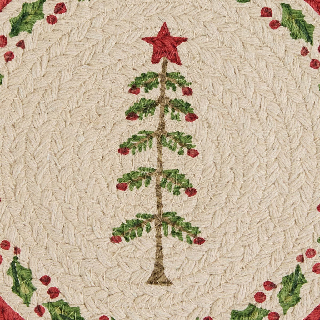 Add a touch of festive charm to your holiday table with our delightful Feather Tree Printed Braided Trivet! This beautifully crafted trivet features a charming feather tree design surrounded by vibrant holly leaves and berries, all set against a natural braided texture. Perfect for protecting your surfaces from hot dishes during holiday gatherings, family dinners, or cozy winter meals, this trivet combines functionality with seasonal flair.