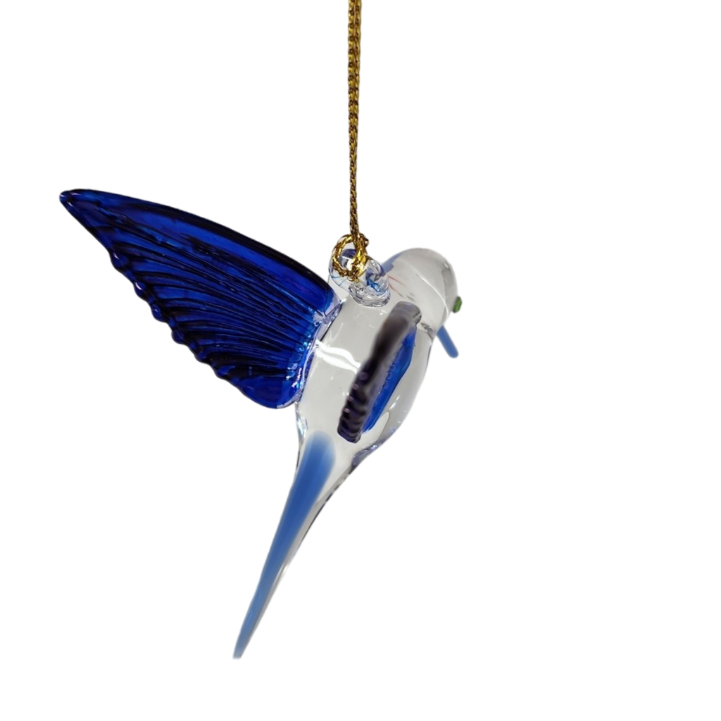 Feeding Hummingbird - Blue/Blue/Blue - Egyptian Glass Ornament
