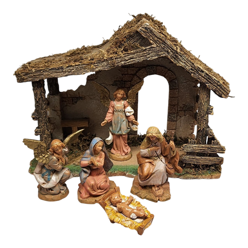 Browse the Complete Gifts & Holiday Collection Bring the story of Christmas to life with our charming Fontanini Nativity Scene set, crafted in Italy and rendered in an enchanting 5-inch scale. This beautiful collection features intricately designed figurines that encapsulate the serenity and joy of the nativity story. Each piece, from the gentle angels to the Holy Family, has been lovingly crafted with attention to detail, showcasing exceptional artistry that will captivate hearts and remind us of the true essence of the holiday. The rustic stable is adorned with natural materials, evoking the humble scene of Christ’s birth and bringing a touch of tradition to your holiday decor.