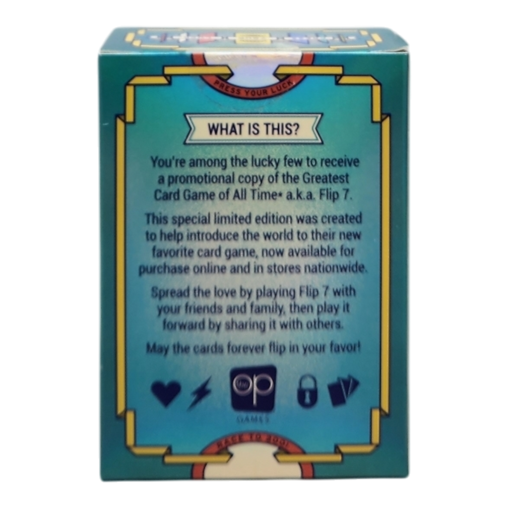 Did you know that the origins of card games can be traced back to 9th century China? They have evolved over the centuries but continue to bring friends and family together just like Flip 7 aims to do! This promotional edition is a special limited release making it a unique gift or addition to your game collection. So shuffle up deal out the fun and let the good times roll as you spread the joy of Flip 7 with those you love. Get ready to flip your way to victory!
