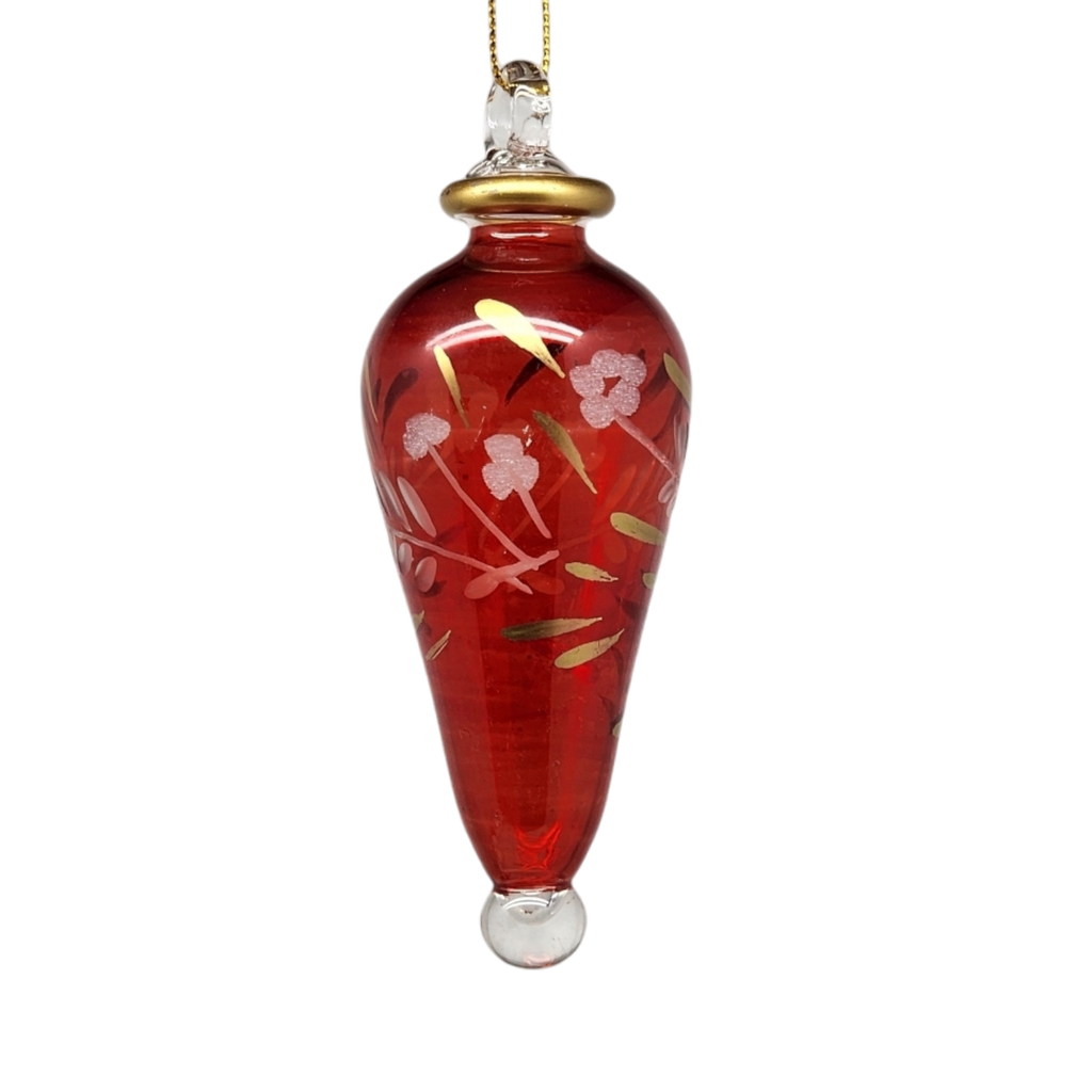 Floral Etched Elongated Teardrop - Red