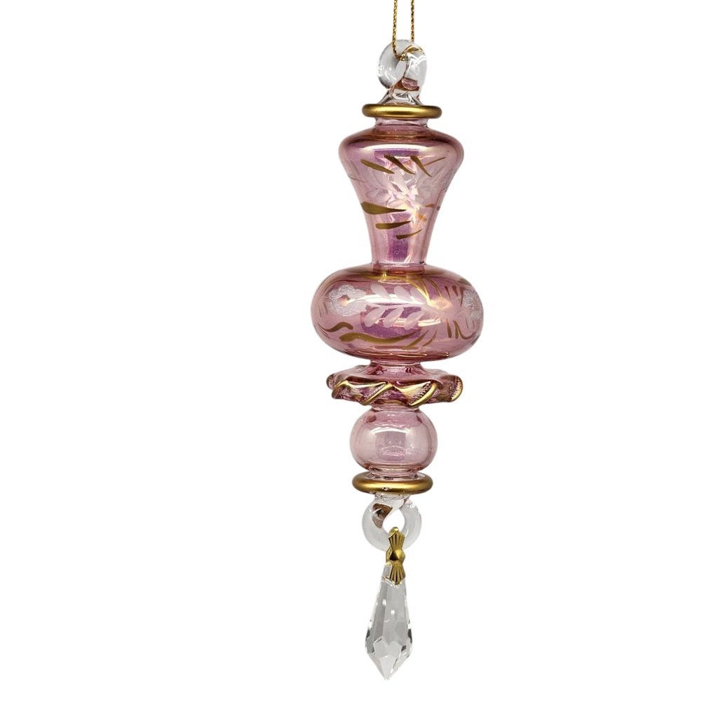 Introducing the enchanting Floral Etched Glass Ruffle Glass Ball in Pink. Standing at an impressive height of about 7 inches, this striking ornament is a testament to the exquisite artistry of traditional glassblowing. Handcrafted from premium Pyrex, its delicate pink hue is beautifully enhanced by intricate floral etchings and adorned with luxurious 10k genuine gold accents, creating a timeless piece that captures light and hearts alike.