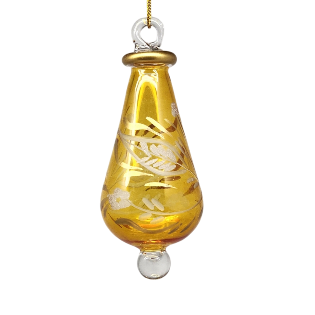 Our Unique ornaments are handcrafted with traditional methods. Each individual Pyrex item is blown over a free fire using a glass pipe the item is then manually painted with high-quality European colors as well as 10k genuine Gold plating they are then put under fire once again to maintain the durability of the colors.