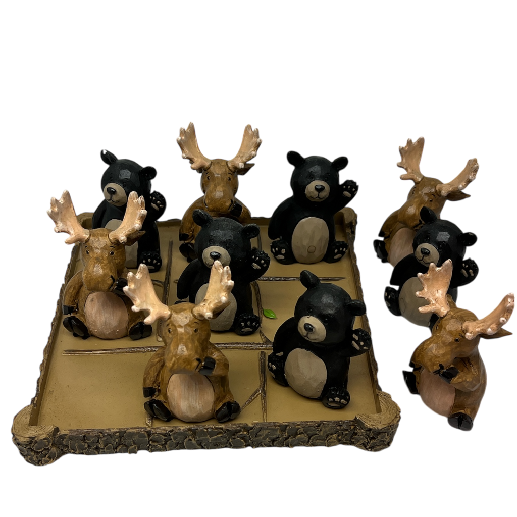 Bring some woodland charm to your game nights with this delightful Forest Animal Tic-Tac-Toe Set. This 11-piece set features adorable bear and moose figures, making a fun twist on the classic game. Each bear stands at 2.95 inches tall, while the moose measures 3.54 inches, ensuring they make a striking presence on the board.