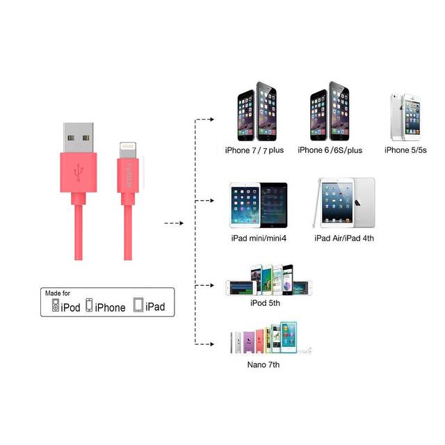 - Universal Compatibility -Compact USB connector head works with nearly all iPhones, such as iPhone 7 Plus / 7 / 6s Plus / 6s / 6 Plus / 6 / SE / 5s / 5c / 5 / iPad Pro / iPad Air / Air 2 / iPad mini / mini 2 / mini 4 / iPad 4th gen / iPod Touch 5th gen / iPod nano 7th gen and Beats Pill+