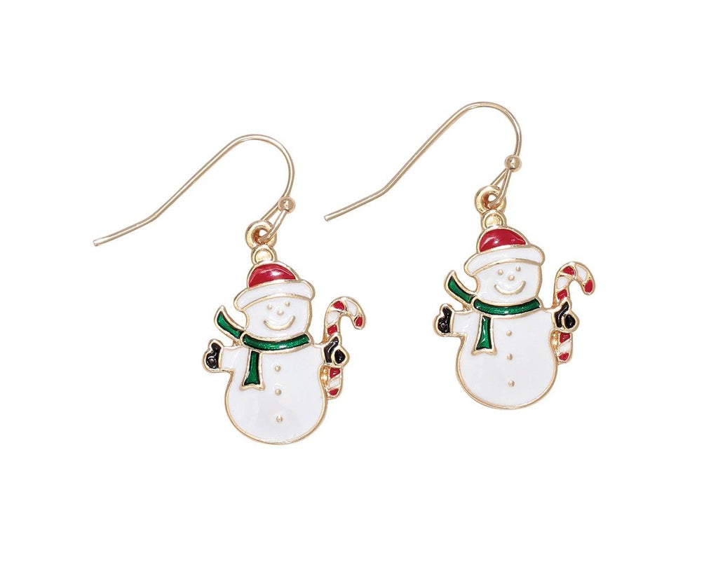 Friendly Enamel Snowmen with Candy Canes Earrings