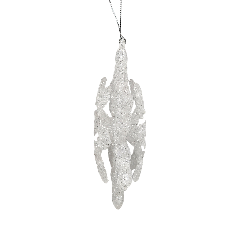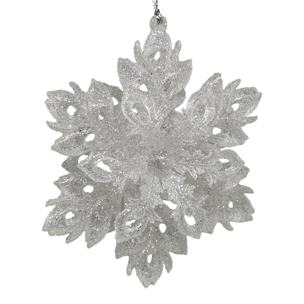 Infuse your holiday decor with the enchanting beauty of our white snowflake ornament, measuring a delicate 5 inches. This exquisite piece captures the essence of winter's whiteness with its shimmering, frosted design, creating a striking focal point on your tree or festive displays. Crafted to mimic the intricate patterns of real snowflakes, it brings a touch of elegance and wonder to your holiday celebrations.