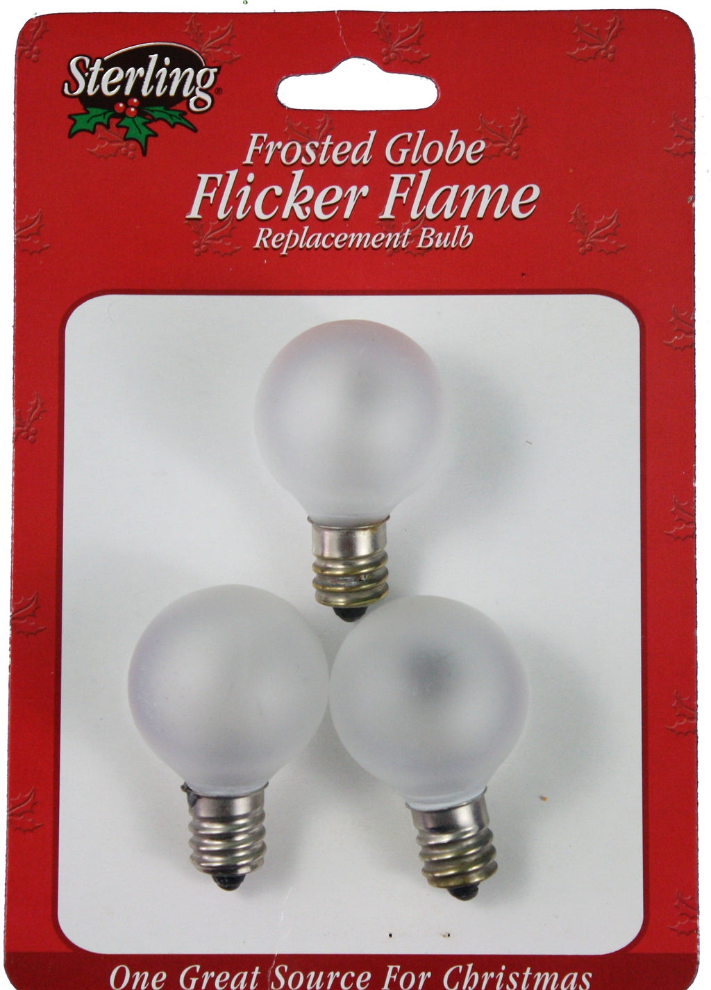 Package of 3 replacement bulbs for G35 (Candelabra) style bulbs. Each Bulb is a 1 inch frosted glass bulb with a 5 watt flicker flmae light within.