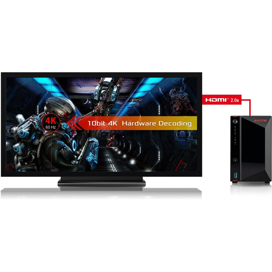 The AS5202T features HDMI 2.0a with 10bit 4K hardware decoding, HEVC decoding and VP9 10bit Profile2 decoding for a smoother experience and lower CPU usage. Use Plex Pass or a third-party player to play 4K HDR videos.
