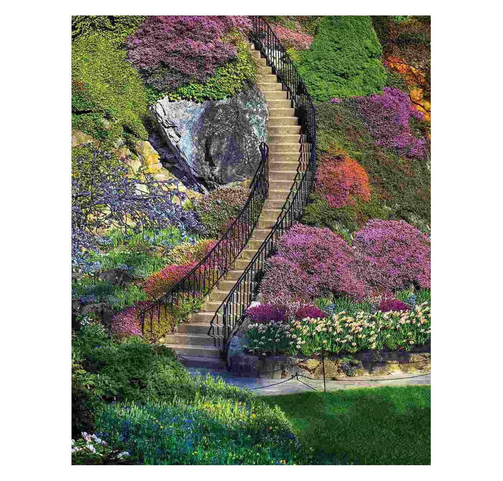 The gentle variations in color combined with an overall similarity in texture make this an especially difficult 500-piece puzzle. Wondering where to start? Take a cue from the stairs and wind your way to the top.