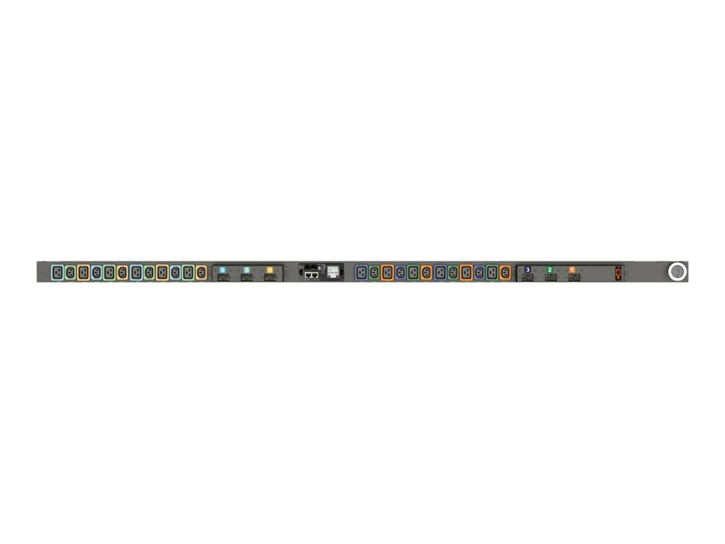 Equipped with 24 output connectors, specifically 12 x power IEC 60320 C13 and 12 x power IEC 60320 C19, this unit can deliver a total power output of 14.4 kW at a voltage of AC 200-240 V. Circuit protection is ensured with built-in circuit breakers and a hard reboot button for enhanced safety and control. Additionally, features like an LED display and IP reset button enhance usability, ensuring that users can monitor and manage power distribution with ease. With TAA compliance and adherence to various standards including UL and RoHS, this product reflects a commitment to quality and safety.
