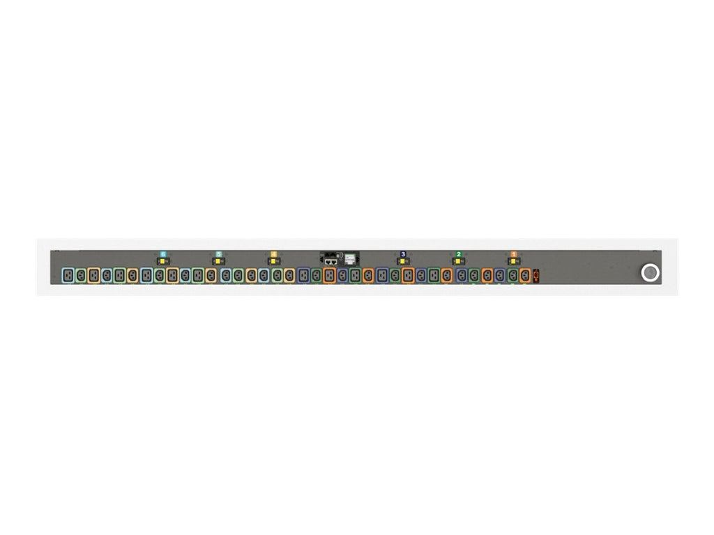 The unit features a comprehensive range of output connectors, including 24 x power IEC 60320 C13 and 12 x power IEC 60320 C19, allowing for flexible connections to multiple devices.