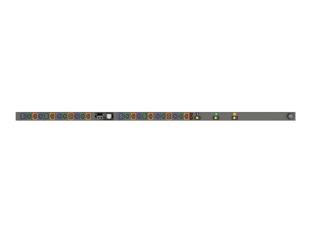 Geist Switched Outlet Level Monitoring MNU5MGB1-24PH68-3TL21A0A10-S-A - Power distribution unit - AC 120/208 V - 8.6 kW - Ethernet 10/100/1000, USB, RS-232 - input: NEMA L21-30P - output connectors: 24 (18 x IEC 60320 C13, 6 x IEC 60320 C19) - 0U - black powder coat - TAA Compliant