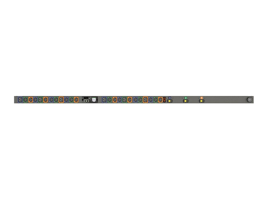 Geist Switched Unit Level Monitoring MNS5MGB1-24PH68-3TL21A0A10-S-A - Power distribution unit (rack-mountable) - AC 120/208 V - 8.6 kW - RS-232, USB, Ethernet 10/100/1000 - input: NEMA L21-30P - output connectors: 24 (4 x IEC 60320 C19, 18 x IEC 60320 C13) - 0U - 10 ft cord - black powder coat - TAA Compliant
