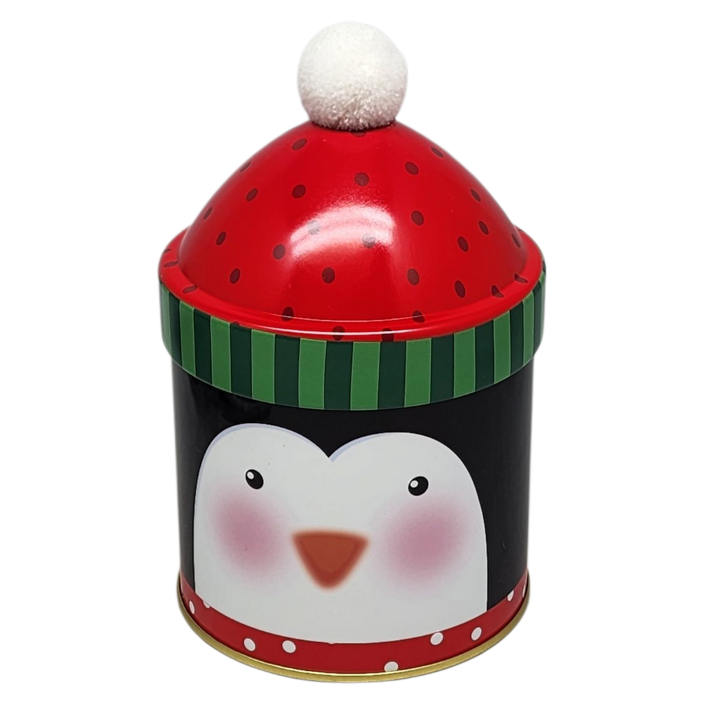 This delightful Penguin Gift Tin is bursting with holiday cheer! Adorned with a playful pom-pom hat and a cheerful penguin face, it's the perfect way to celebrate winter festivities. Penguins are known for their fascinating social behavior and adaptability to freezing temperatures, making this festive container a fun nod to the animal kingdom while encapsulating the warmth of the season. Picture this tin nestled beneath your Christmas tree, ready to house treats, small gifts, or delightful seasonal decor.