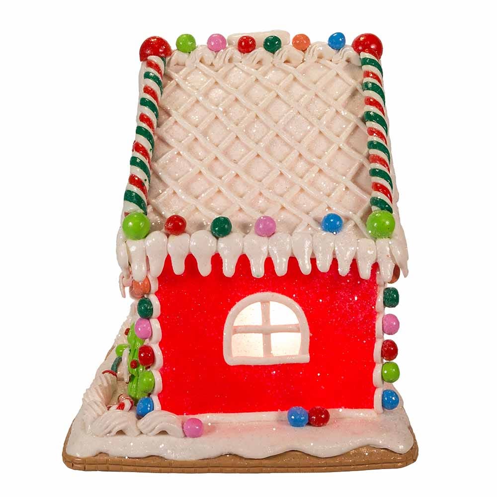 Add a sweet touch to your holiday décor with this claydough red gingerbread house with C7 bulb from Kurt Adler! Its delicious-looking design has everything you would want in a classic gingerbread house, from the icing snow to the candy embellishments. When plugged in, the house lights up with a warm glow from within with its C7 bulb.