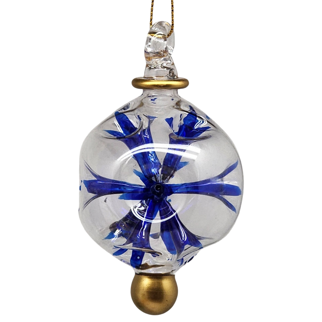 Our Unique ornaments are handcrafted with traditional methods. Each individual Pyrex item is blown over a free fire using a glass pipe, the item is then manually painted with high-quality European colors as well as 10k genuine Gold plating, they are then put under fire once again to maintain the durability of the colors.