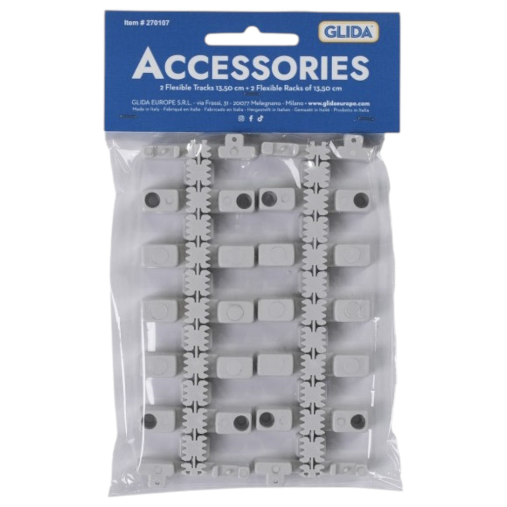 - Includes 2 flexible tracks and 2 flexible racks, each about 5.3 inches (13.5 cm) long