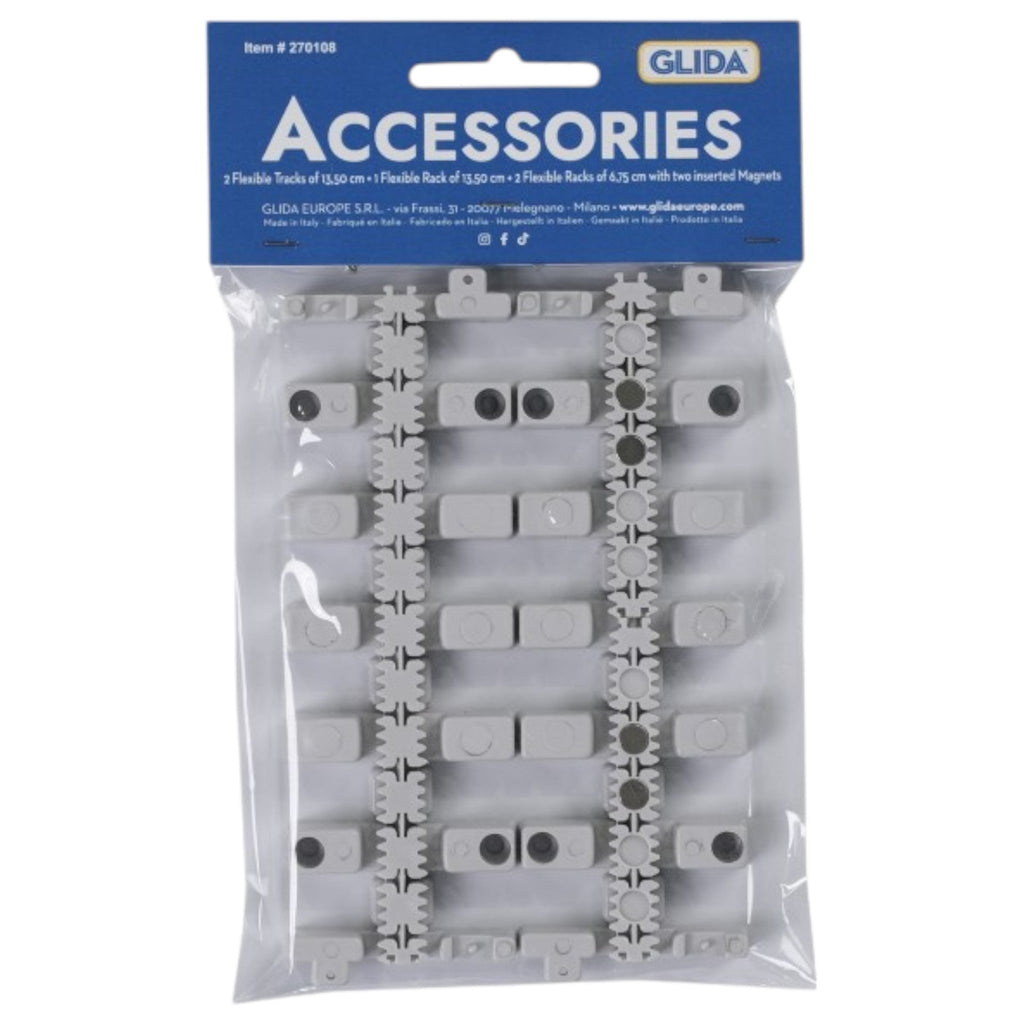 Enhance and diversify the routes in your GLIDA PlatformOne Christmas Village with Track Extension Pack 2. This set includes a mix of flexible tracks and rack pieces—some with built-in magnets—to help you build longer, curvier paths for your miniatures to slide along. With pieces measuring just over 5 inches and others around 2.6 inches, you can craft intricate loops, turns, and extended straights to suit your festive vision.