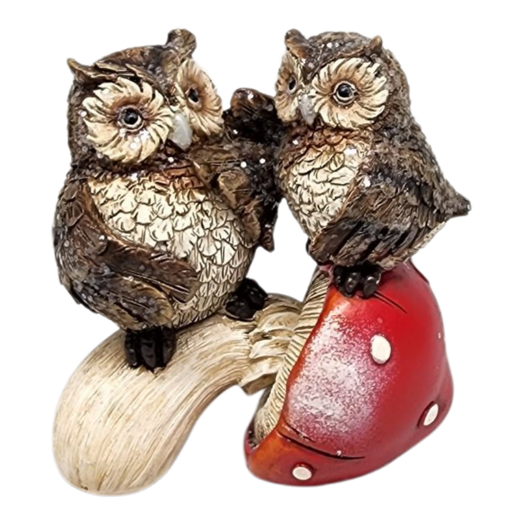 Welcome a touch of enchantment to your home decor with our delightful Whimsical Owl Figurines! Measuring just under 4 inches tall, 2.5 inches wide, and just over 5 inches long, these charming polyresin figures feature adorable owls perched atop whimsical toadstools, radiating warmth and personality. Each set includes two unique designs, showcasing a parent owl tenderly interacting with its little one, creating a heartwarming scene that will surely bring smiles to everyone who visits!