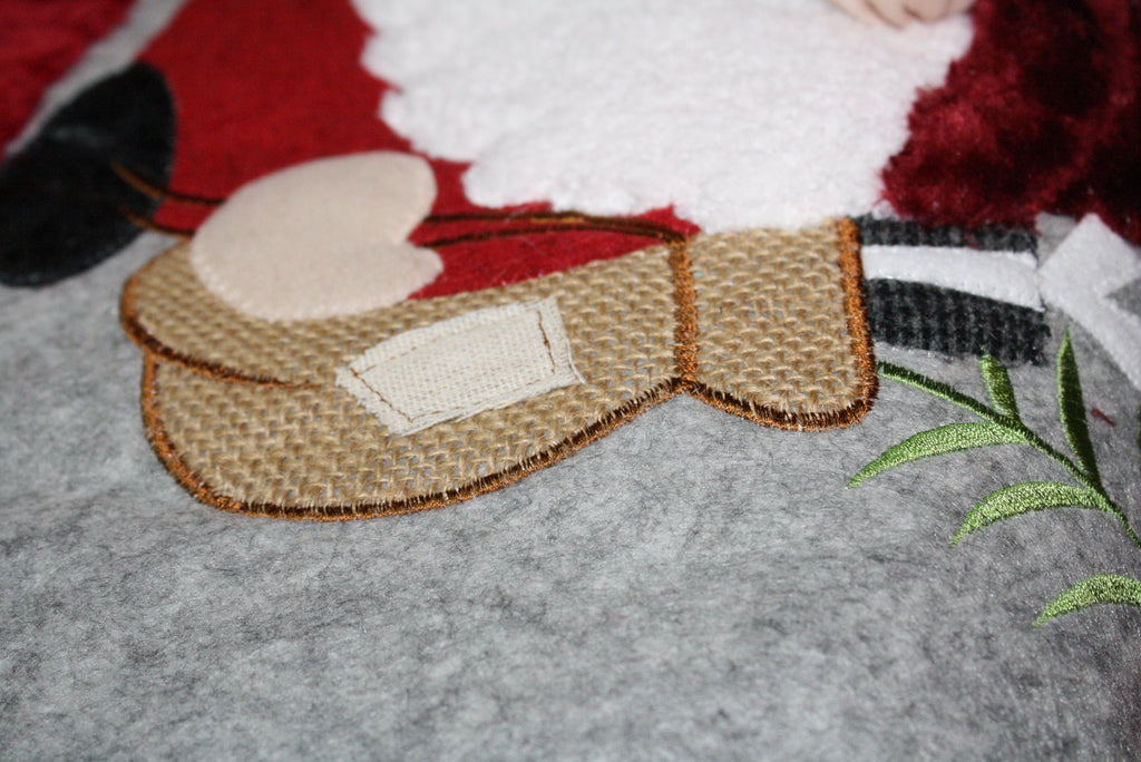 Plush tree-skirt with amazing detail. Fleece construction with scalloped edges embroidered designs and furry appliques.