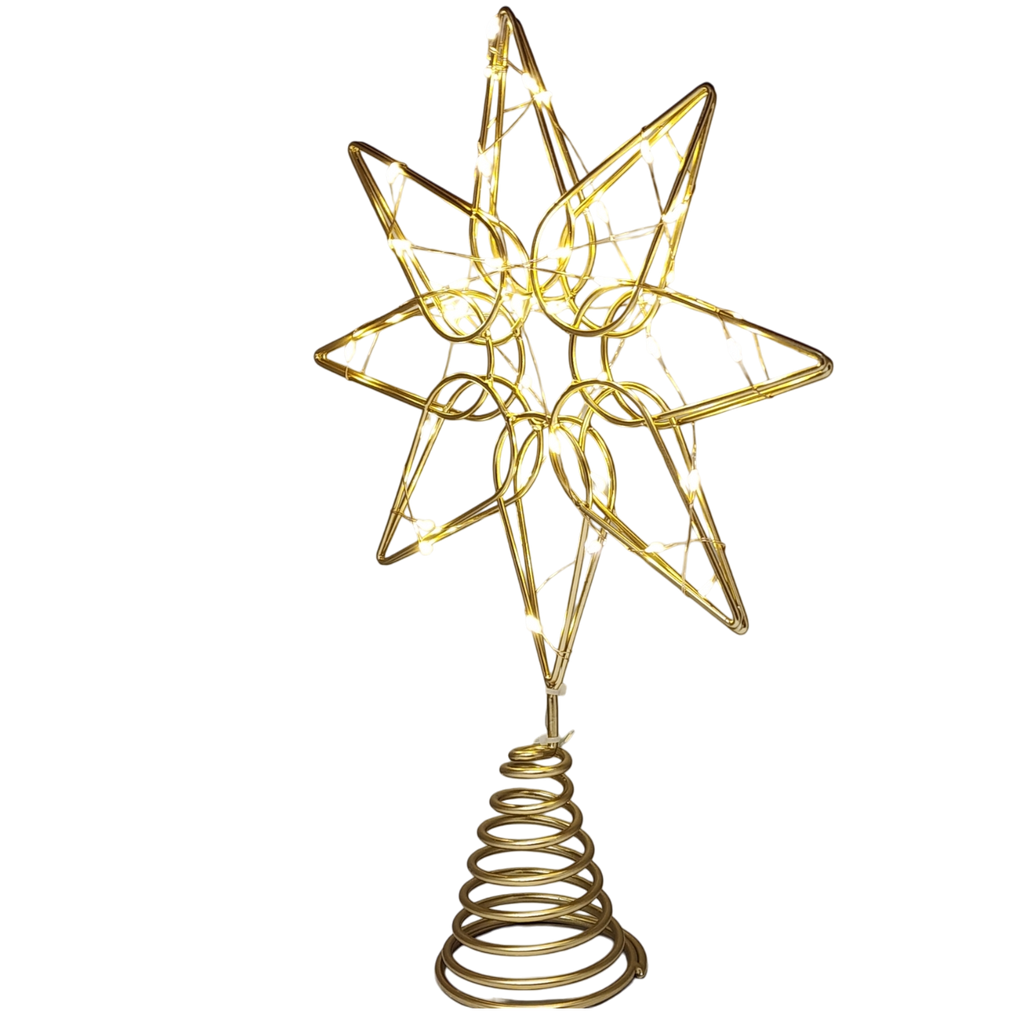 Elevate your holiday decor with this stunning 13-inch star tree topper, a perfect blend of elegance and warmth. Crafted from delicate wire, it showcases a beautiful star design illuminated by 40 warm white LEDs, creating a dazzling display that will shine throughout the season. The battery-operated feature allows for easy placement without the hassle of cords, giving your tree a polished look that captivates everyone.