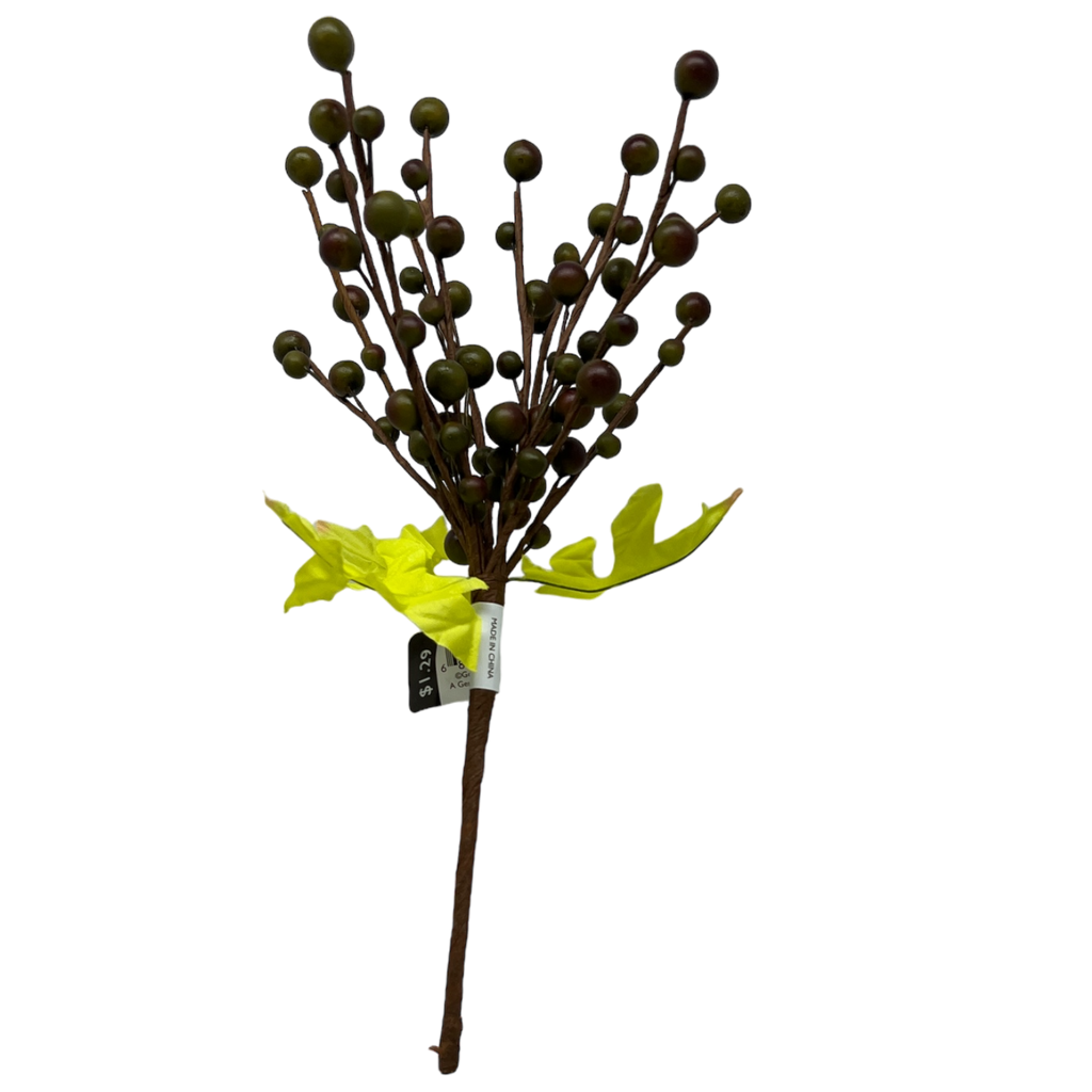 The green berries, nestled on sturdy stems, create a striking visual contrast with the bright yellow and green autumn leaves, adding depth and texture to any arrangement. This beautiful combination brings a fresh, natural element to your fall and Thanksgiving decorations.