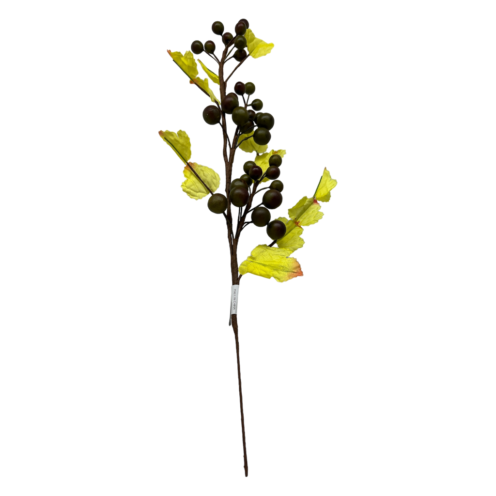 Celebrate the invigorating essence of fall with our 15 1/2-inch Green Grape Cluster Spray with Autumn Leaves. This elegant decoration showcases clusters of lush green grapes intertwined with vibrant yellow and orange leaves, echoing the beauty of the harvest season. Whether used as a striking addition in a vase, an accent in a wreath, or part of a festive table arrangement, this spray will elevate your autumn décor with its natural allure.