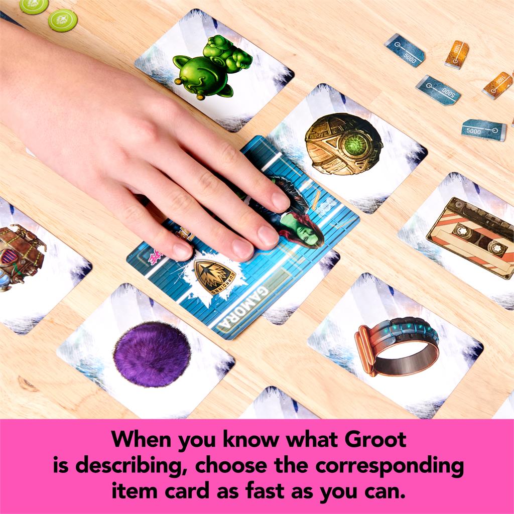 FAST-GRABBING, LOOT-SNATCHING: When you know what Groot is describing, choose the corresponding item card as fast as you can! Get Units when you grab fast and snatch loot from others. Be the player with the most Units to win!