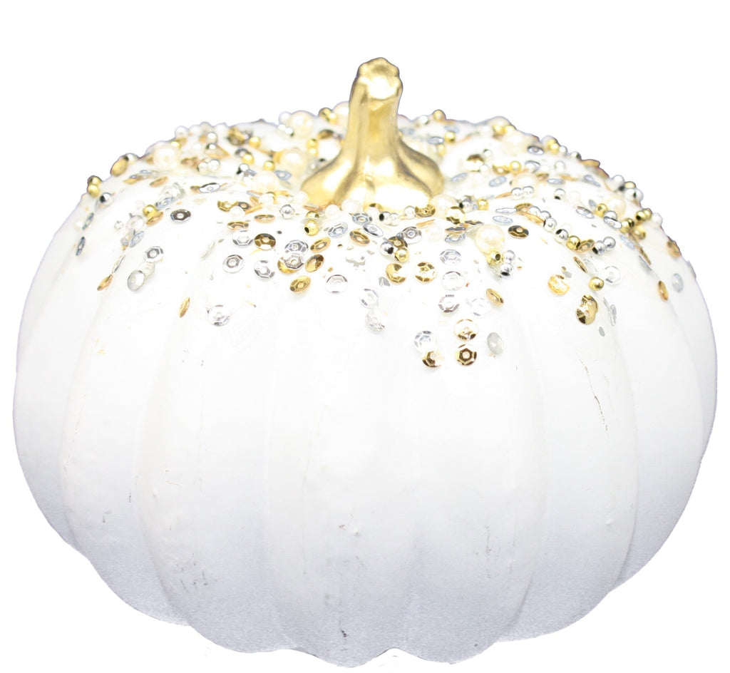 6.3 inch Blown Glass pumpkin with sequin and jewel accents on top.