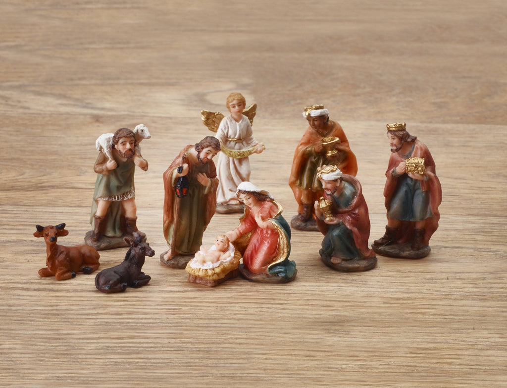 Each 12" (30cm) Christmas cracker contains a snap, amusing joke, party hat and a random Nativity Figurine.