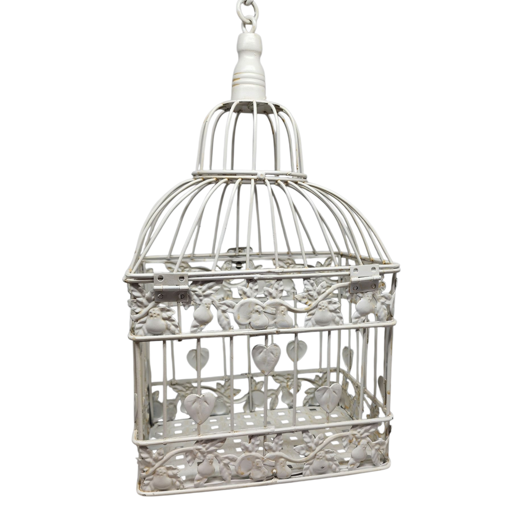 Birdcages have symbolized love and freedom for centuries, making this an especially fitting decoration for romantic occasions like anniversaries and weddings. The intricate floral patterns and heart-shaped accents evoke a sense of nostalgia, reminiscent of more carefree days. This holiday season, embrace the spirit of giving by using this lovely birdcage to present your favorite decorative pieces or even miniature Christmas trees. Spruce it up with seasonal decorations, and it will light up any celebration, making it a versatile choice year-round!