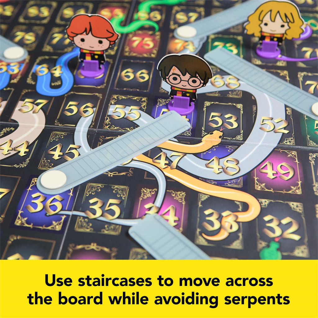 - ENTER THE WIZARDING WORLD OF HARRY POTTER: Play as your favorite characters - Harry, Hermoine, Ron, and Draco Ð as you race to the top of Hogwarts in this exciting wizarding twist on a classic game!