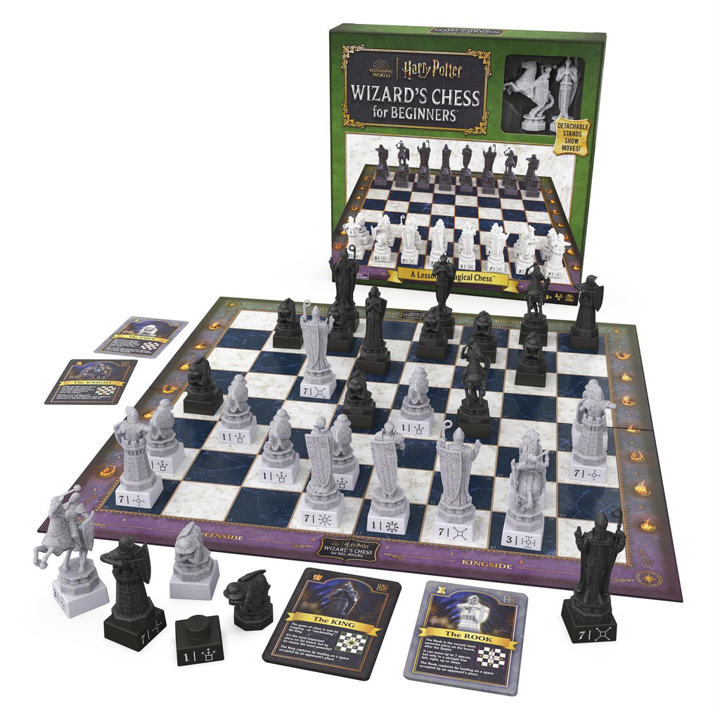 Calling all students who want to learn & practice how to play Wizard`s Chess! Become a chess apprentice with this double-sided board & beginner`s set that features detailed recreation pieces of Wizard Chess Set as in Harry Potter and the Sorcerer's Stone with detachable stands that show how each piece should move for quick reference & apprenticeship cards to help you learn, transforming beginners into chess masters and allow for students of all levels to hone their skills. RELIVE HARRY POTTER MOVIES: Based on the magical moving chess set as seen in Harry Potter and the Sorcerer's Stone, learn to play & practice Wizard`s Chess with detailed recreations of the chess pieces from the movie.