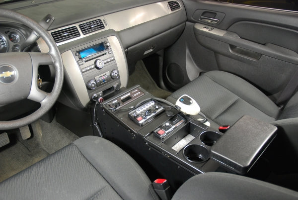 Product Details: - Vehicle specific console for 2007-2014 Chevrolet Tahoe (special service) - Mounts between bucket seats and fits to dash contour - 21" of control head mounting area - Provides 2.5" inches between console and seats for added driver comfort and accessory mounting - OEM lower dash controls and 12 volt sockets with wire and fuse are protected and do not need to be relocated - Allows C-AP-1395 (13" long x 9.5" deep) accessory pocket to be installed - Works with C-DMM-114 dash monitor mount. C-TCB-7 with C-MD-204 and C-KBM Series recommended for keyboard mount in C-DMM-114 application - If using a vertical gun rack between seats, a partition with gun alcove is recommended - C-SM Series brackets not recommended because they may block OEM lower dash controls - Includes filler plates (FP) and/or equipment brackets (EB) to completely enclose mounting area less internal mount options - Includes plate for mounting electrical devices with access from removable front trim panels - No additional vehicle mounting kit required - C-HDM-204 or C-HDM-214 side mount pole recommended (sold separately) - C-ARM-102 or C-ARM-103 arm rest recommended (sold separately) - Accepts C-CUP2-I dual cup holder (sold separately) mounts in rear horizontal section - Accepts C-CUP2-I-A11 internal 11° degree Angled dual cup holder (sold separately) mounts in forward Angled section