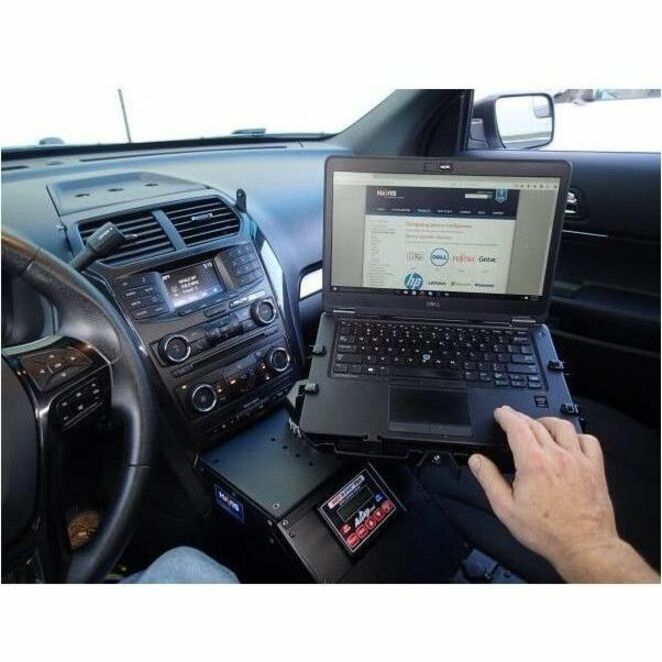- Upgraded next generation universal cradle, re-designed with customer feedback incorporated - Lighter yet still ultra-rugged, weighing only 3.72 lbs allowing more mounting options - High value non-electronic computing solution, customizable to fit your mobile office requirements - Longer life span with high performance injection molded materials enabling future re-deployments - Extra durable powder coat painted top plate, creating a hard finish tougher than conventional paint - Ultra-thin and low profile maximizes space and visibility in your mobile office - Increased vertical and horizontal adjustability allows a broader range of compatible computing devices - Smooth glide functionality for easier stationing and removing of computing device for ultimate portability - Designed with round corners to add safety and minimize risk in potential accidents & airbag deployment. - Sliding hold down lugs allow for flexibility and access to computing device ports and inputs - Unique strain relief holes provide organized cabling and secure connectivity of peripherals - Enhanced security and safety with built in locking mechanism for peace of mind against theft and uncradling - Advanced reliability, proven through product testing and long term customer use cases - Integrated mounting points for the addition of optional power supplies and rugged Communications hub - Distinctive sleek new product coloring and branding, clearly communicates high-quality