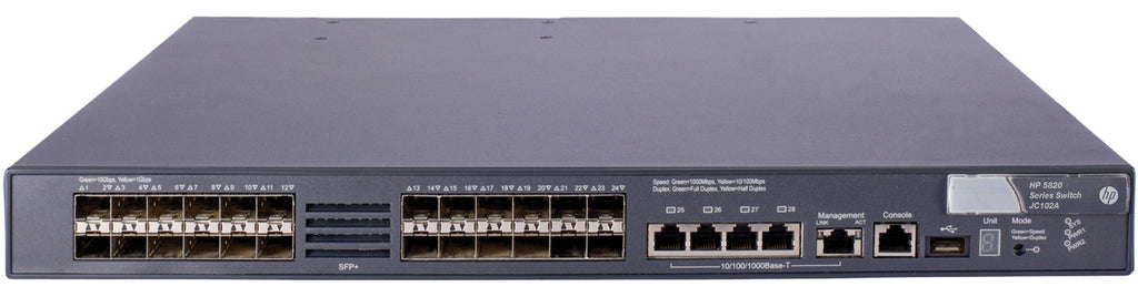 Versatile Data Center Switches - The HP 5820 Switch Series is available in several models offering flexible 10GbE and 1/10GbE deployments designed for the top-of-rack within the data center. - Models offer 14 ports, or 24 ports for high-performance applications. - Provides a RJ45, SFP+ server connectivity and expansion slot for application modules.