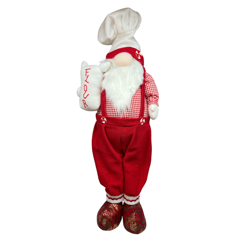 Welcome the magic of the season into your home with our delightful Holiday Chef Gnome, standing proudly at 23 inches tall. This charming gnome is festively dressed in traditional red attire, complete with a checkered shirt, red overalls, and a whimsical chef’s hat adorned with a peppermint design. Holding a cozy pillow that reads “YUMMY,” this gnome epitomizes the spirit of holiday baking and festive feasting!