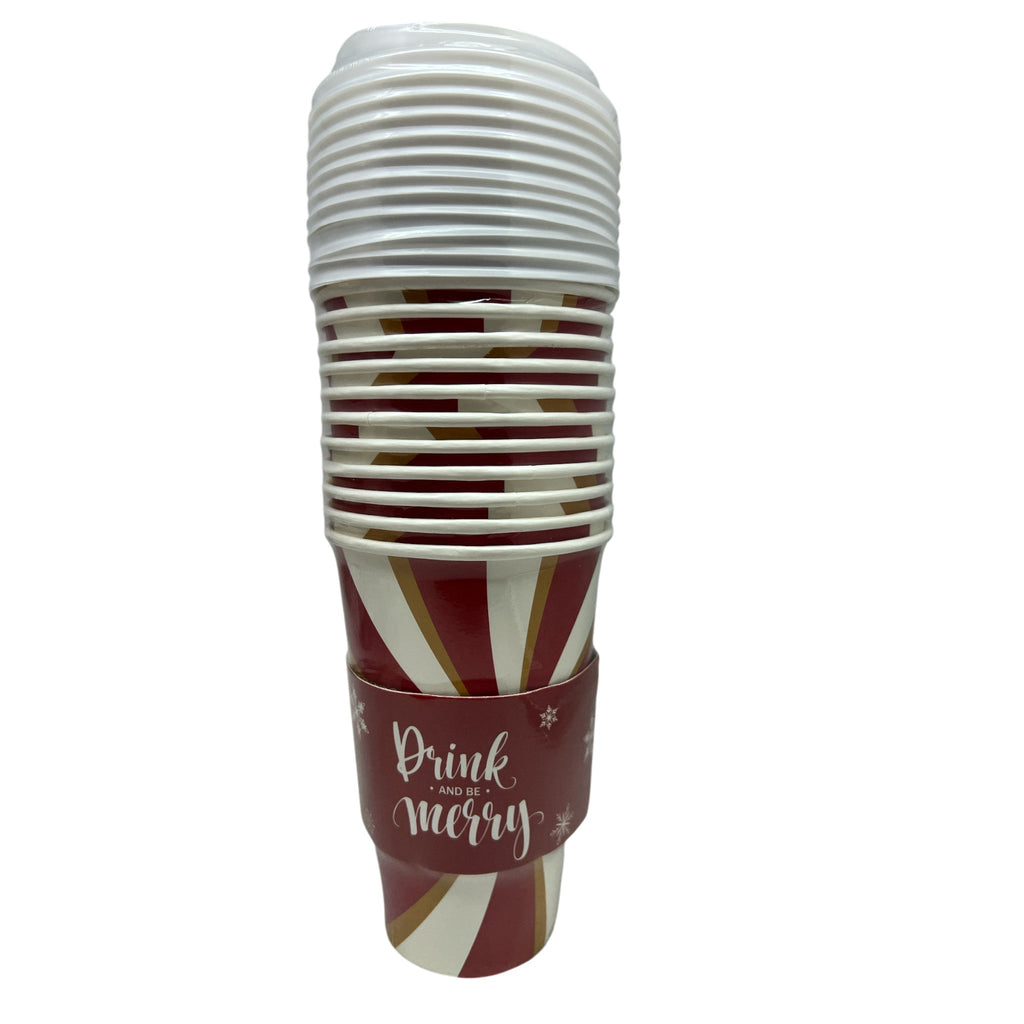 Get into the festive spirit with our Drink & Be Merry Hot Cups Set! These charming cups feature a striking red and cream design, adorned with the cheerful phrase “Drink and Be Merry.” Perfect for serving a warm cup of coffee, creamy eggnog, or spiced apple cider, this set includes 12 cups, each with a lid and sleeve for an all-around warm and cozy experience. At 16 ounces, they are perfectly sized to hold your favorite holiday treats and are sure to uplift the mood of your gathering.