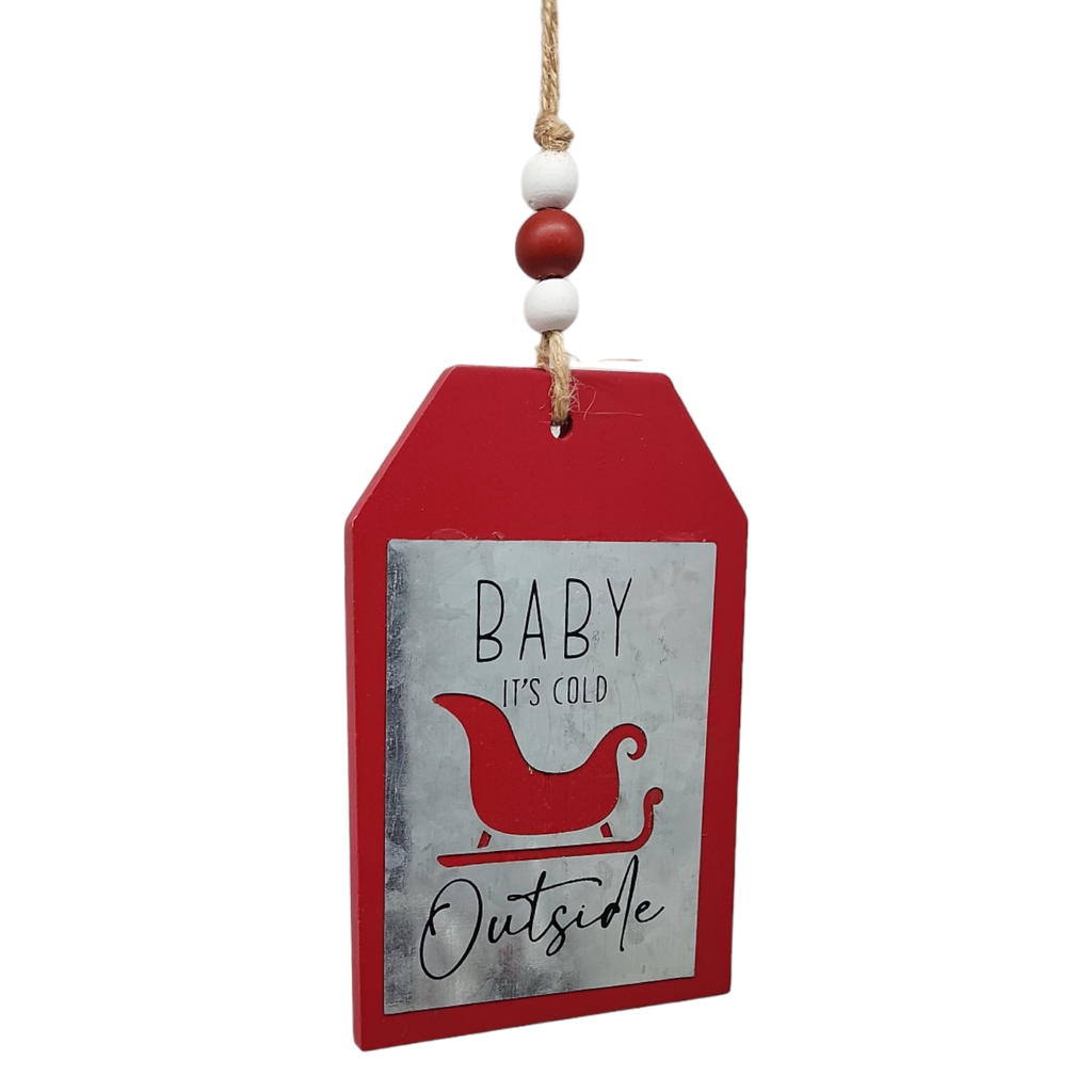 This beautiful holiday tag sign is made of wood with a layer of cutout galvanized tin.