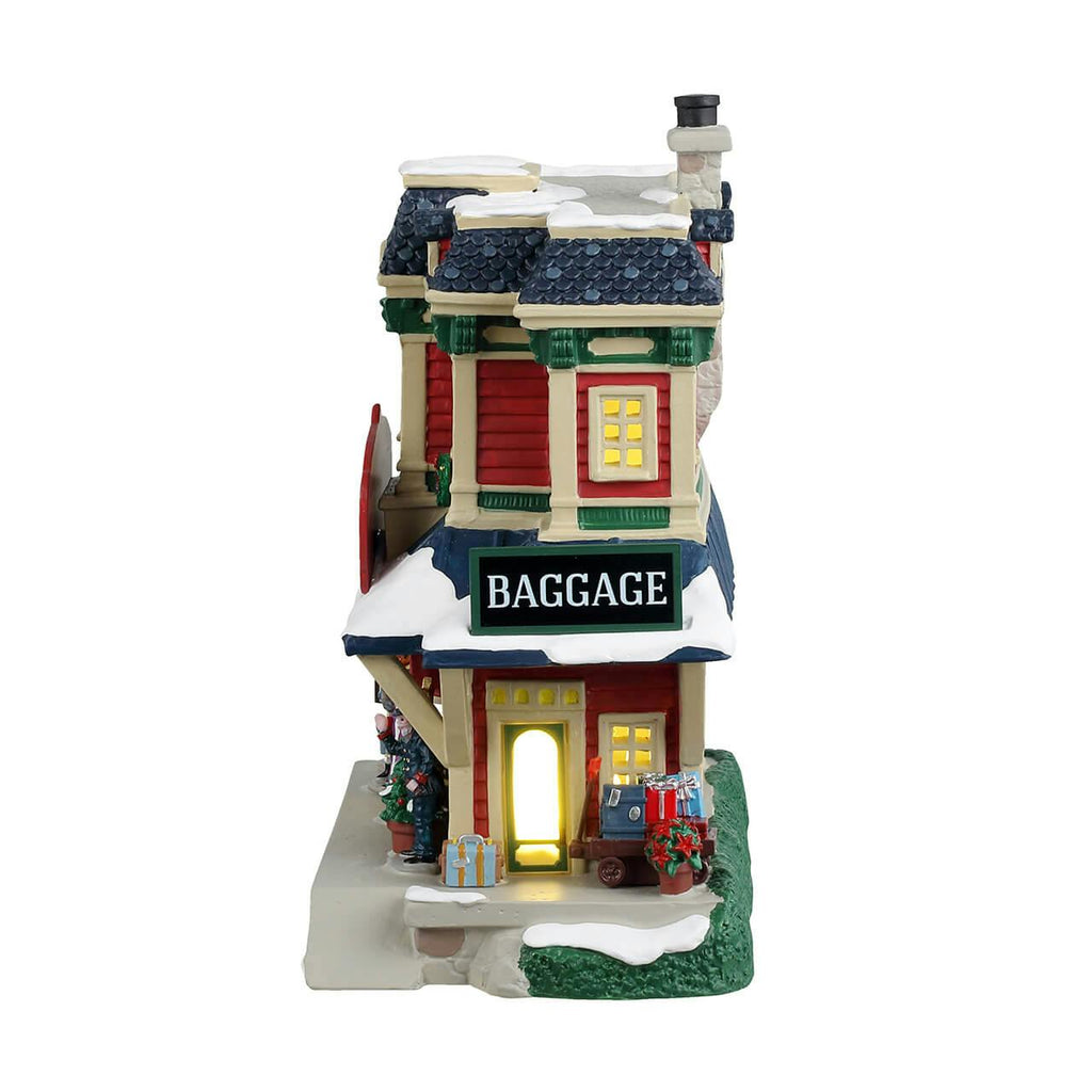 This lighted building not only serves as a stunning visual centerpiece for your holiday village but also tells a story of anticipation and adventure. Imagine the sounds of cheerful laughter and the sights of bustling travelers as they prepare for the festive season. With its intricate craftsmanship and cozy glow, this piece will transport you to a world of winter wonder and warmth, making it a treasured addition to your holiday décor!