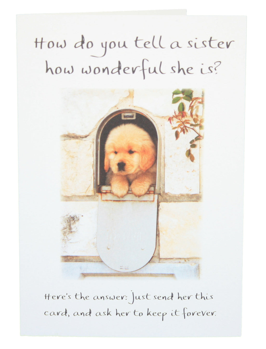 Front: How Do You Tell A Sister How Wonderful She Is? Here's the answer: just send her this card, and ask her to keep it forever.